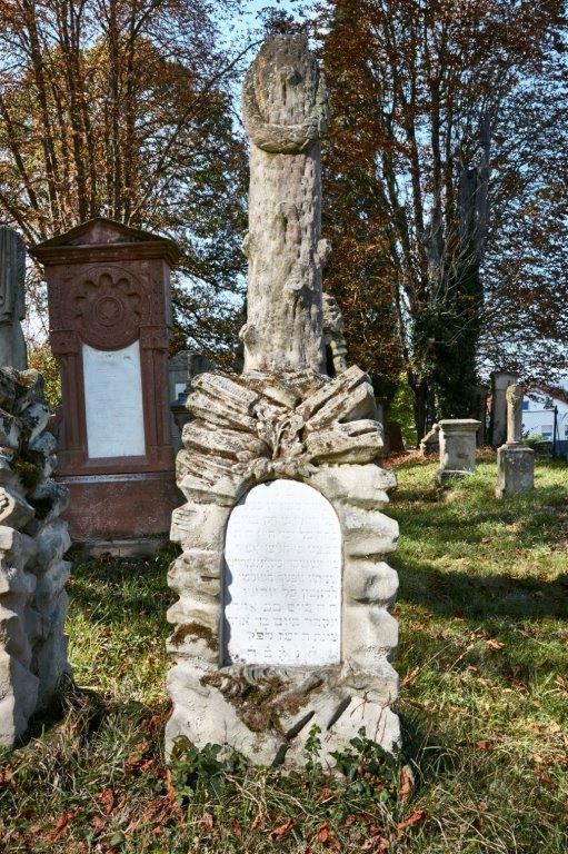 Der abgebrochene Baumstamm zeigt an, dass das hier zu früh beendete junge Leben nicht zur Entfaltung kommen konnte. Interessant ist auf dem linken Seite des Sockels eine kleine Kinderhand, die sich hinüberstreckt zur ebenfalls so jung verstorbenen Schwester Isabella und symboisiert: Wir halten uns und gehen gemeinsam, gleichsam Hand in Hand hinüber ins ewige Leben.