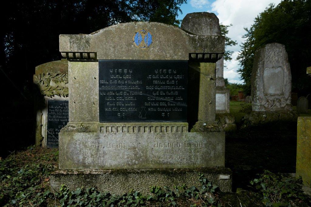 Die Schrifttafel wurde bei der Wiederherstellung des Friedhofes verkehrt eingesetzt.