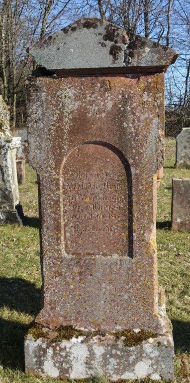 Stein: Roter Sandstein mit Abschlussstein und weißer Marmorschriftplatte