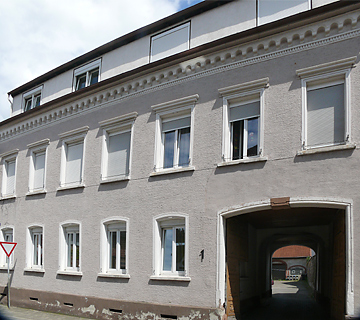1842 war die Plannummer 195 noch als Bauplatz von Nathan Blum, Gutsbesitzer, ausgewiesen. Hier hat der Inhaber der Firma Blum und Roos ein stattliches Haus errichten lassen, um Platz genug zu haben für die Oelraffinerie und den Großhandel mit Landesprodukten.