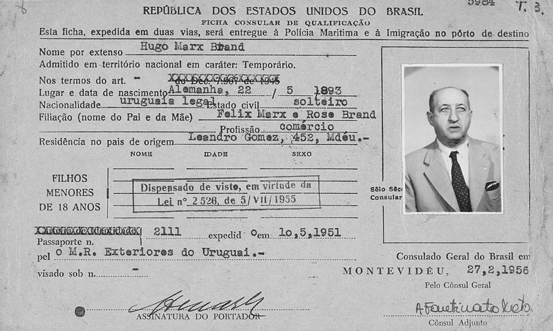 Hugo Marx (geb. 20. Juni 1893 in Ingenheim, gest. 16. Oktober 1975 in Montevideo), Sohn des Pferdehändlers Felix Marx und seiner Ehefrau Rosa geb. Brand, war ein charmanter und umgänglicher junger Mann, der sich stark dem weiblichen Geschlecht zugeneigt fühlte. Im Jahr 1920 übersiedelte er nach Mannheim, wo er in einem Getreidegeschäft angestellt war. Nachdem sich bei einer der Frauen Nachwuchs einstellte, musste er Mannheim verlassen.
