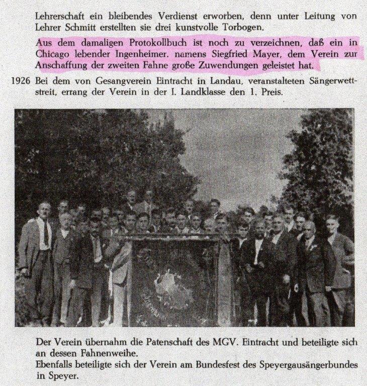 Siegfried hat in Verbundenheit mit seiner Heimat dem MGV Ingenheim eine Fahne gestiftet.