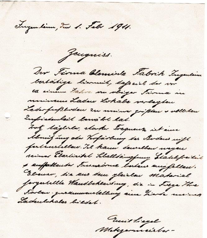 In der Obergasse 1 betrieb Eugen Moritz ab ca 1910 die "Chemische Fabrik Ingenheim (Emil Koppel Nachf.) Inhaber Eugen Moritz in Ingenheim. Hier wurden "Koppelsche fugenlose Lederfußböden und Wandverkleidungen" hergestellt und vertrieben. Zwei Dankschreiben der Metzgerei Siegel und der Manufakturwaren Benjamin Jeremias, beide aus Ingenheim, liegen vor und bescheinigen die hervorrangenden Eigenschaften dieser Lederfußböden.