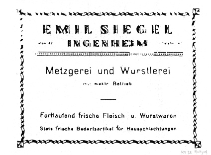 Abraham Siegel, geboren am 23. Juli 1810 in Göcklingen, Sohn des Metzgers Moses Siegel und seiner Ehefrau Regine Israel, heiratete am 28. März 1841 die Ingenheimerin Barbara Marx (geb. 27. August 1818, gest. 17. April 1884) und führte so die bereits bestehende koschere Metzgerei Lazarus Marx in der Rohrgasse, Ecke Hauptstraße (damals in der Hausnummer 241) unter seinem Namen weiter.