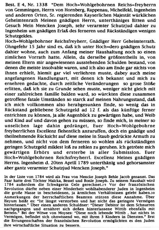 12 Bittschriften Ingenheimer Juden an die Freiherren von Gemmingen von 1787 / 8